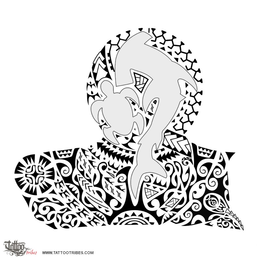 The main element of the addition is a warrior holding a row of spear heads above his head and being the base of the whole tattoo, protecting hammerhead shark and turtle.