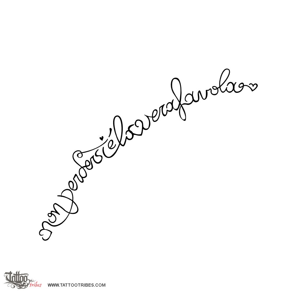 It´s the phrase "non perdersi è la vera favola" (not getting apart is the real fairy tale) written in a simple yet slightly decorated cursive.