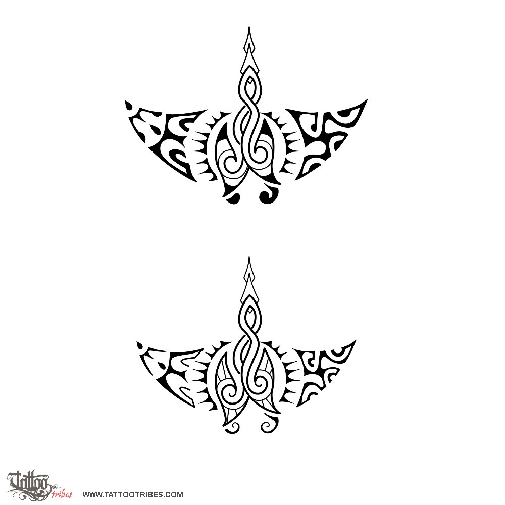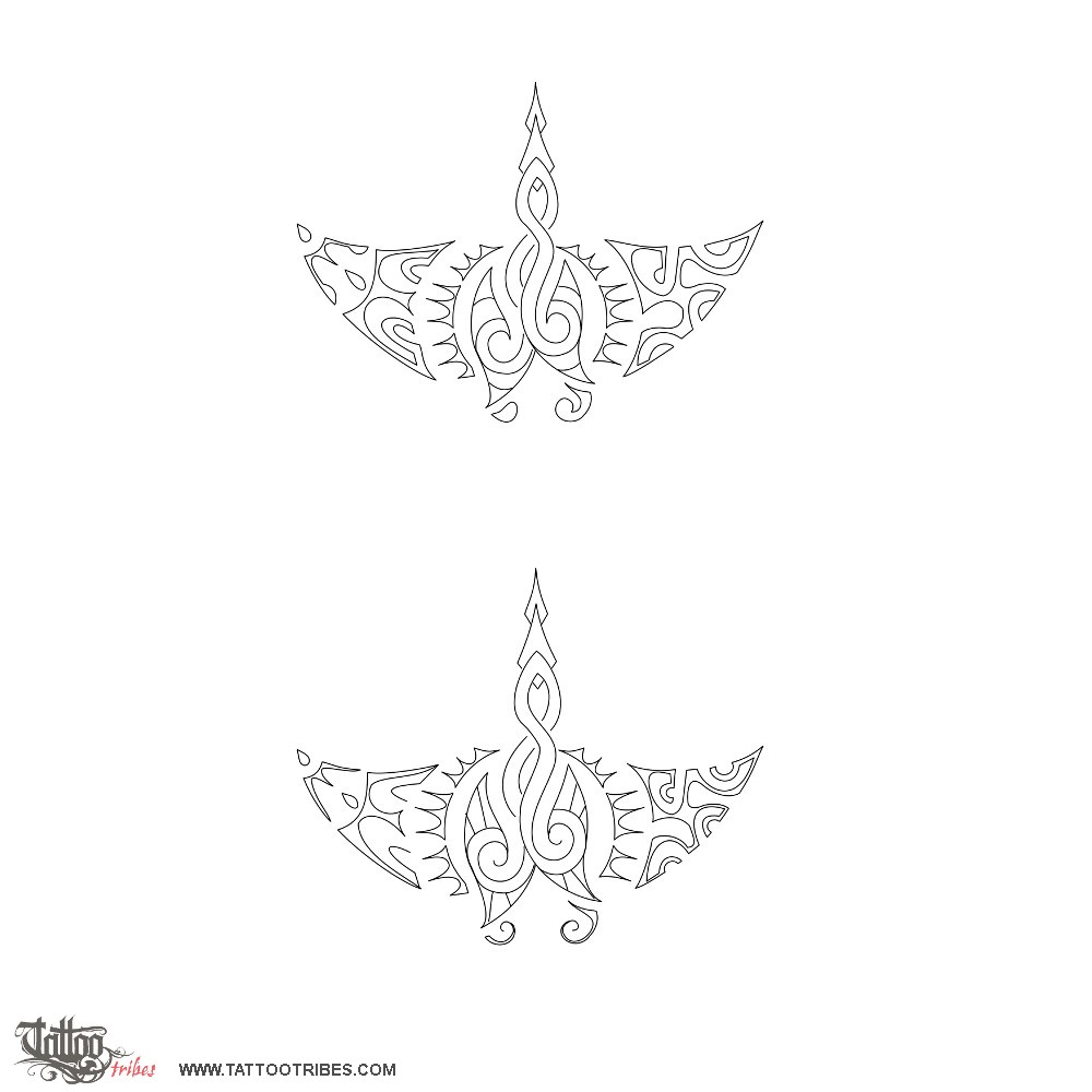 The two small koru that form the mouth of the manta indicate new beginning while the tiki eyes shaped by the wings of the bigger bird are for protection.