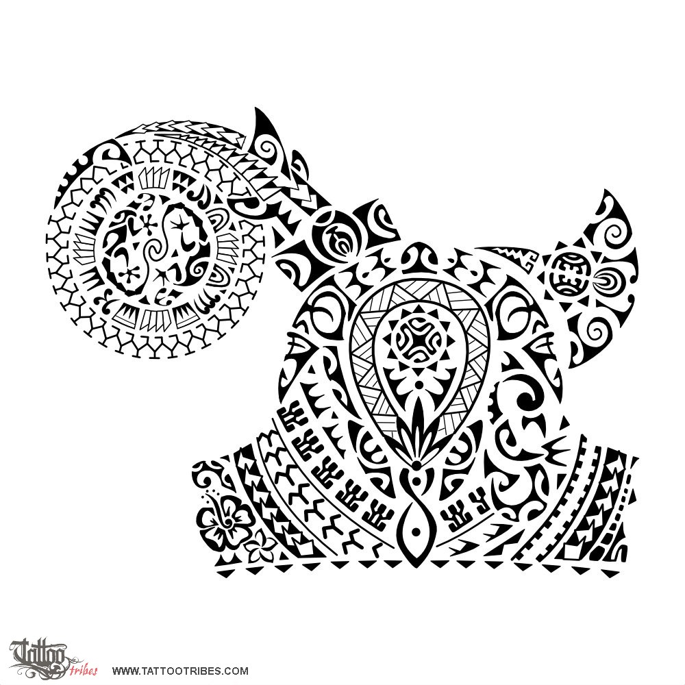 The manta on the back of the shoulder is a symbol for voyage and freedom with two koru symbolizing the two children who brought a new sun to the family. Shark teeth are for adaptability, tenacity and protection.