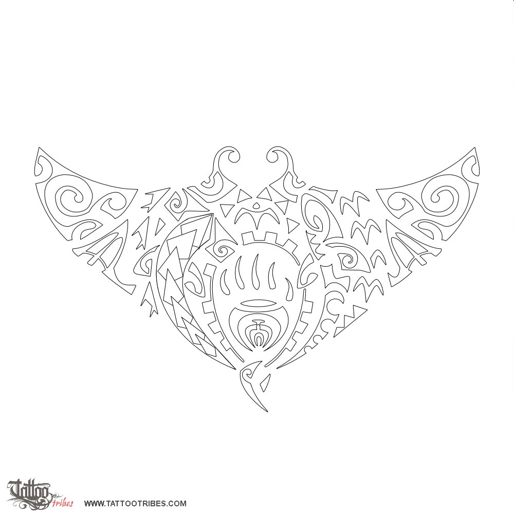 The manta ray symbolizes freedom, and inside of it there is a stylized bear paw surrounded by a path of Kamehameha symbolizing difficulties, with an all-seeing eye in the center for protection.