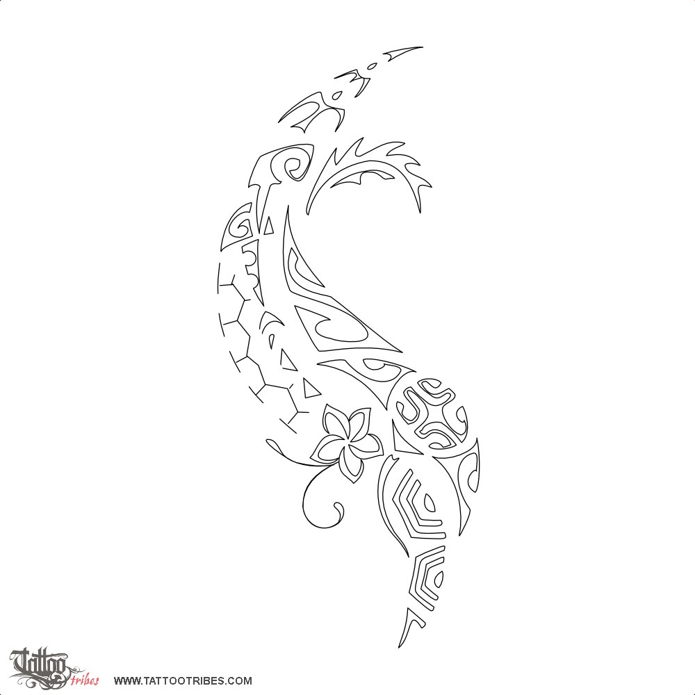 At the bottom, a turtle shell motif recalls family, with a plumeria flower representing femininity and protection.