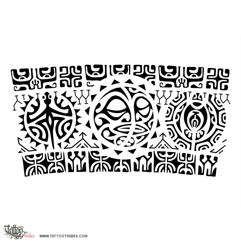 Polynesian tattoos explainedThis armband tattoo requested by Paulo consists of two bolder bands enclosing three main symbols: a lizard, a sunmoon and a turtle.