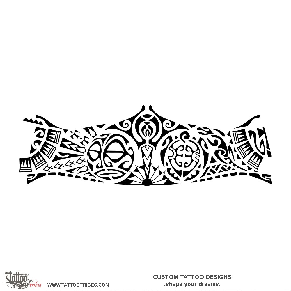 The manta (freedom) placed in the center of this band tattoo protects the sunmoon and the turtle.