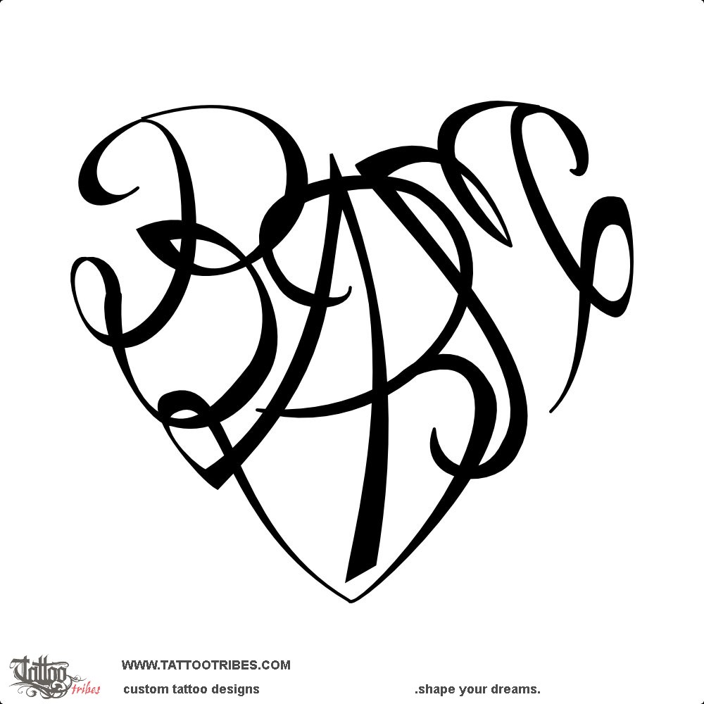 This heartigram tattoo shaped by the union of the letters B+A+B+M represents the family of Marie-Louise, for whom it was prepared.