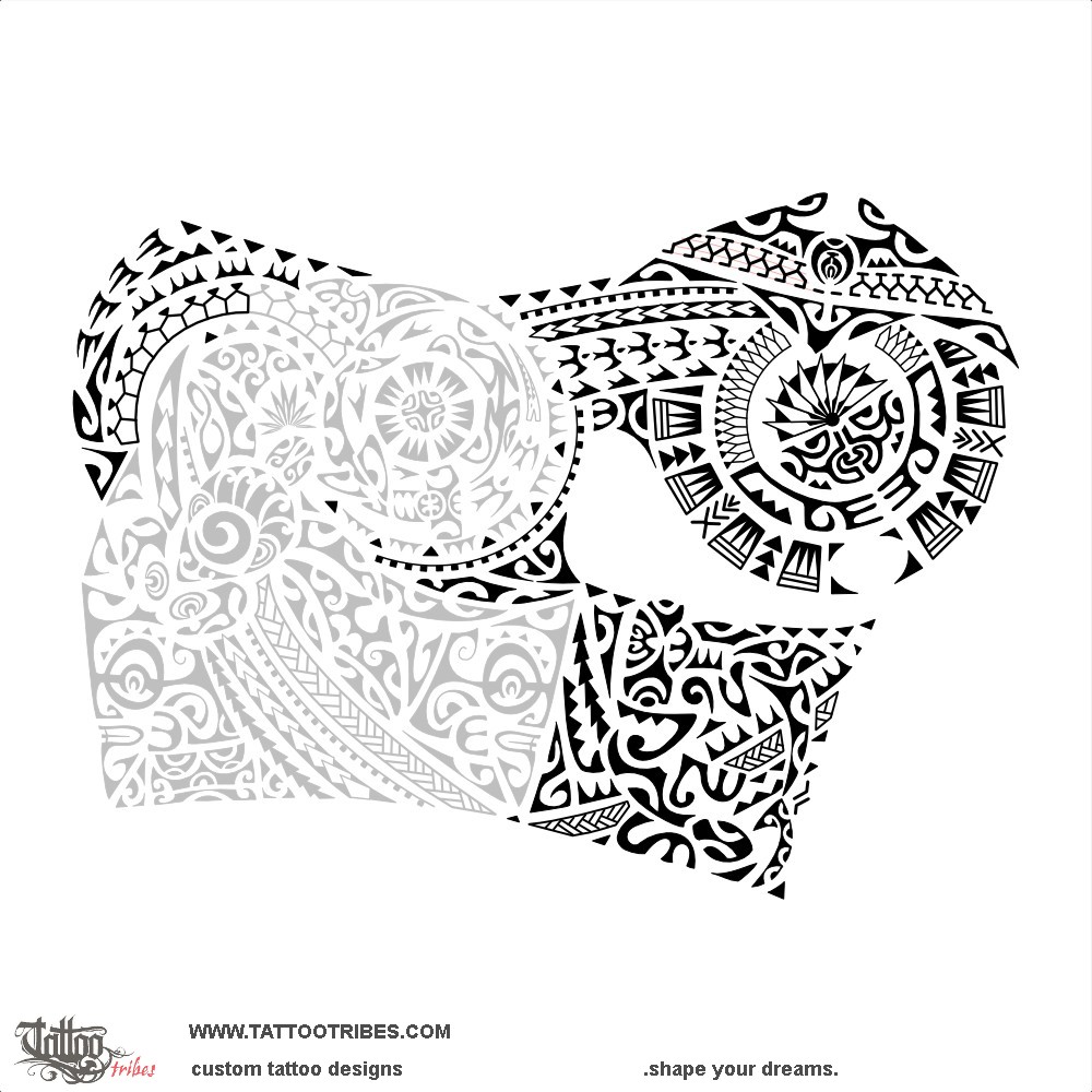 The manta on the pec symbolizes freedom and beauty, protecting the flax leaves in the center (family) together with the tiki just below them.