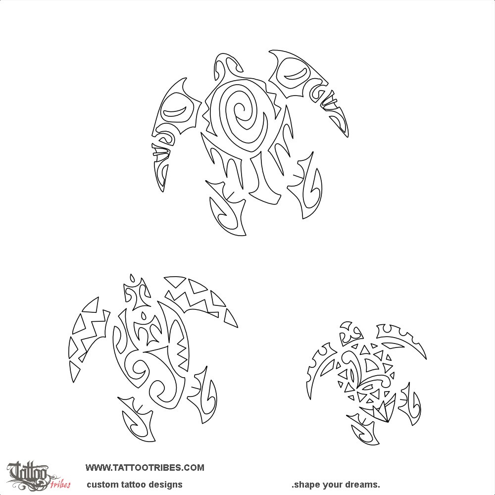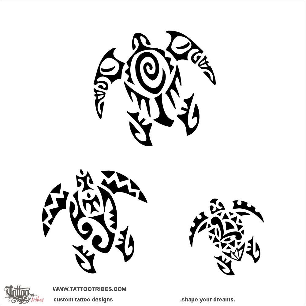 From top, the biggest turtle includes a C that shapes a mere (a symbol of the chief, courage and respect) with tiki on the front flippers for protection.