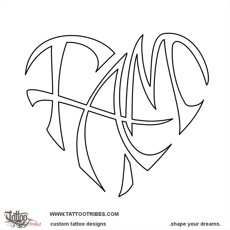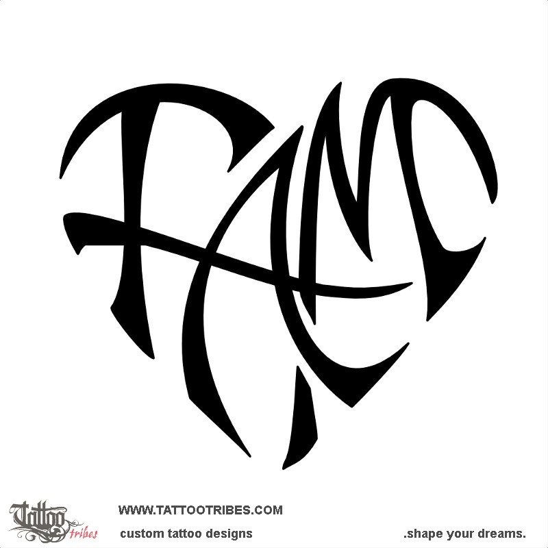 This heartigram prepared for Tony was designed joining the letters F+A+M.