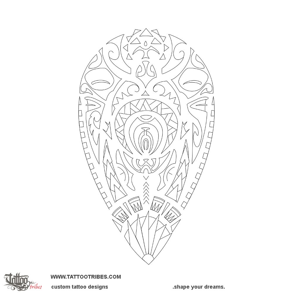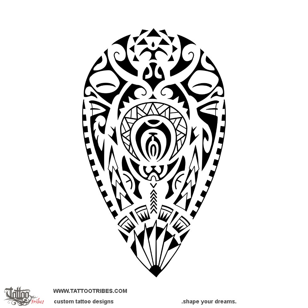 This tattoo was prepared for Francesco´s calf and it symbolizes family, protected by the tiki on the front flippers, by the all-seeing eye in the center of the shell and by the warrior below it.