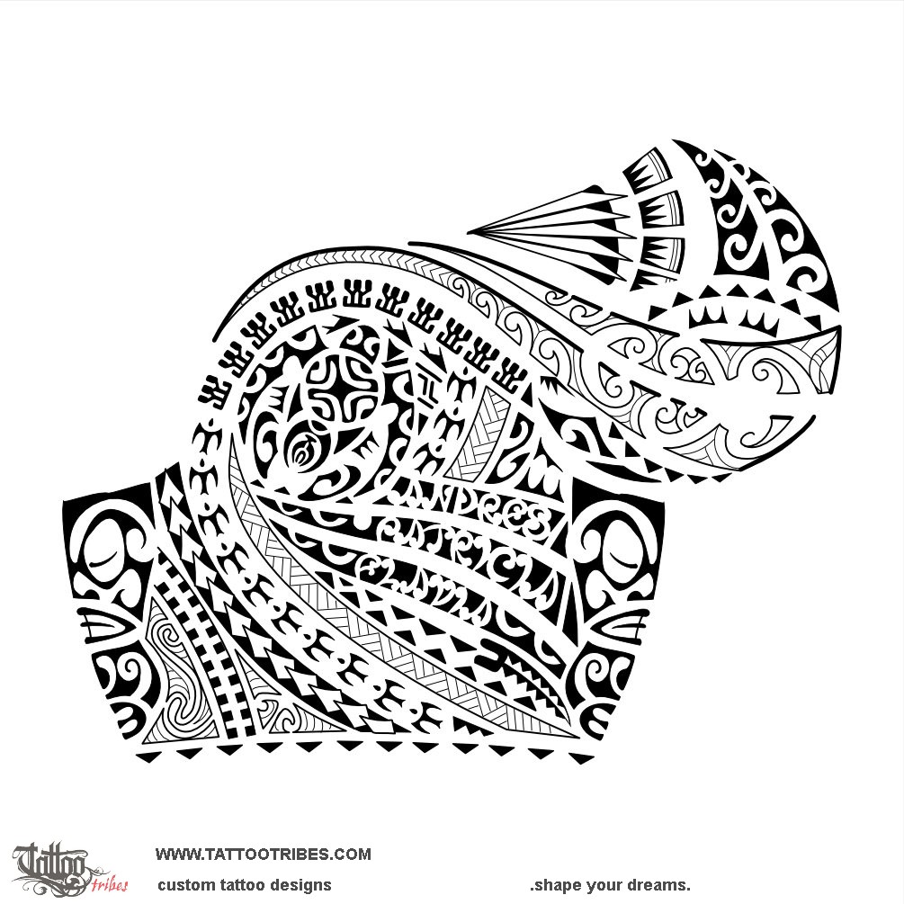In the middle of the shoulder there is a turtle for family, with a Marquesan cross and an all-seeing eye for harmony and protection.