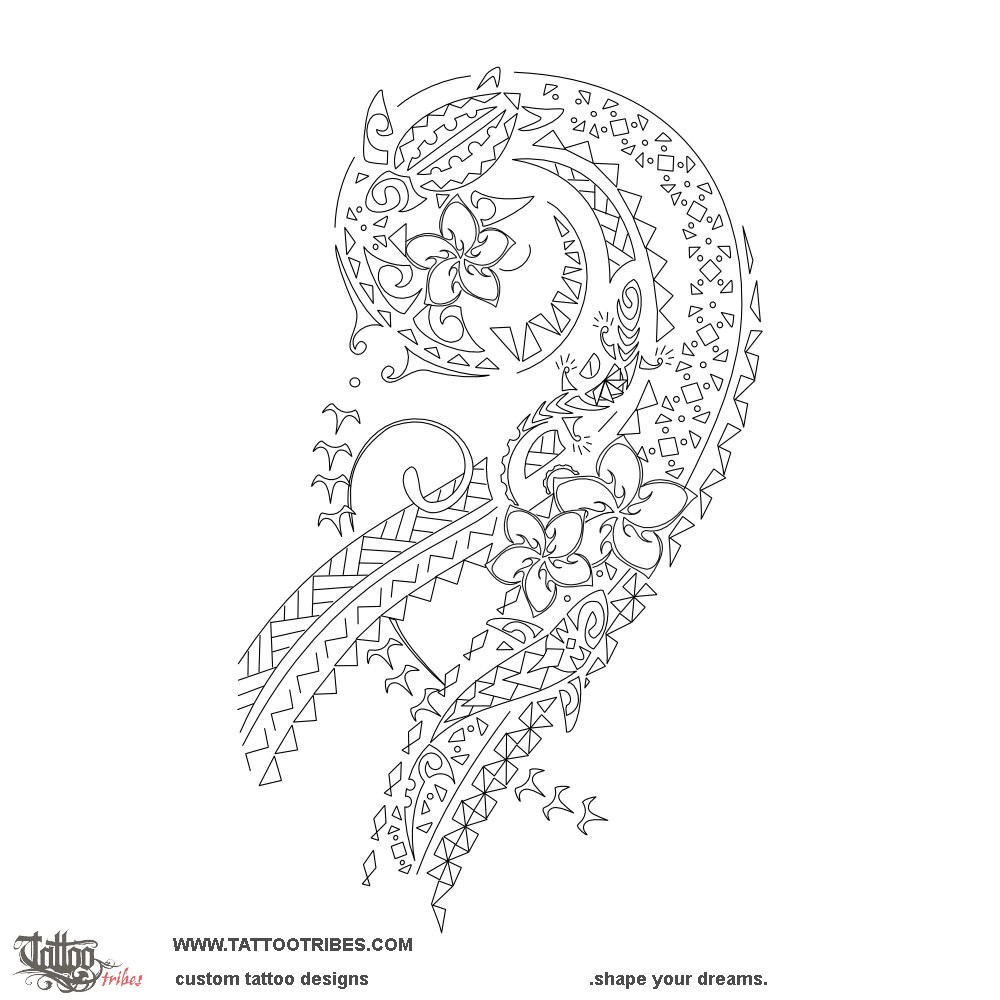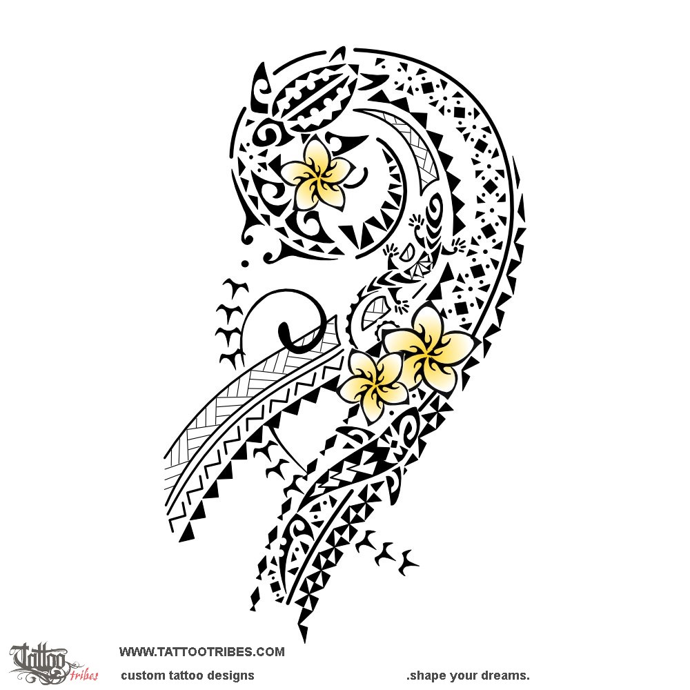 Frangipani flowers symbolize beauty, femininity and protection, shark teeth are for adaptability and fish for prosperity.