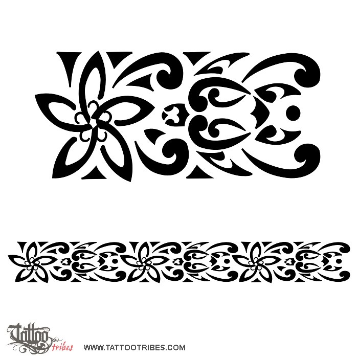 Sue requested a Maori styled ankle band to recall her origins far away, with turtles (family, voyage), korus (new life) and frangipani flowers (plumeria).