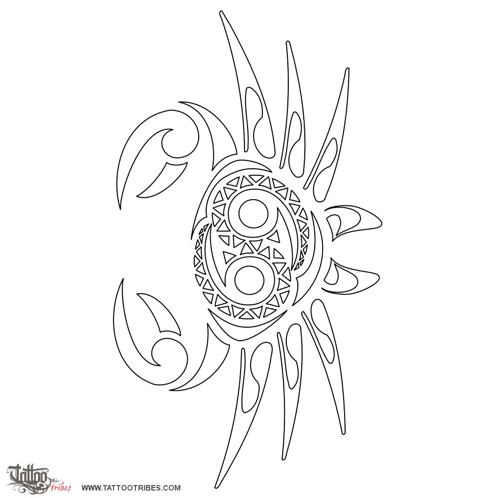 This tattoo was requested for a strong man, great mechanic, with a great sense of humour, born under the star sign of cancer. Those are the reasons why we used thick lines, and the shark teeth (strength) forming two suns around the cancer symbol interlock each other like two gears.