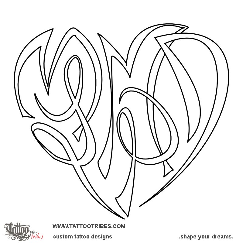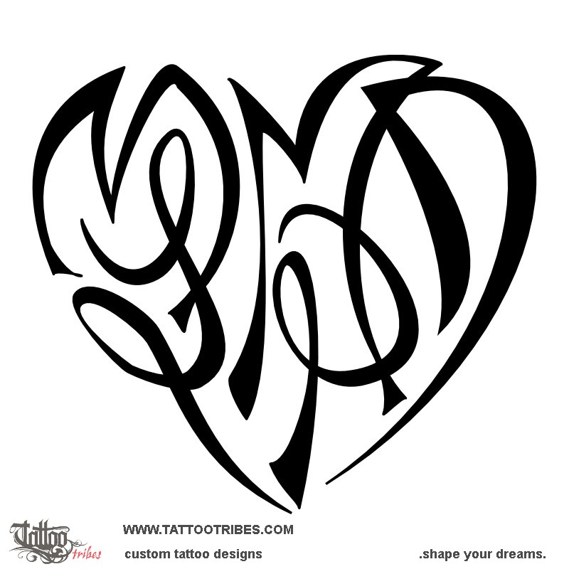 Polynesian tattoos explainedThis heart formed by the union of several letters (or heartigram), was prepared for Mara and it contains the initials of the members of her family: M+L+M+P+D.