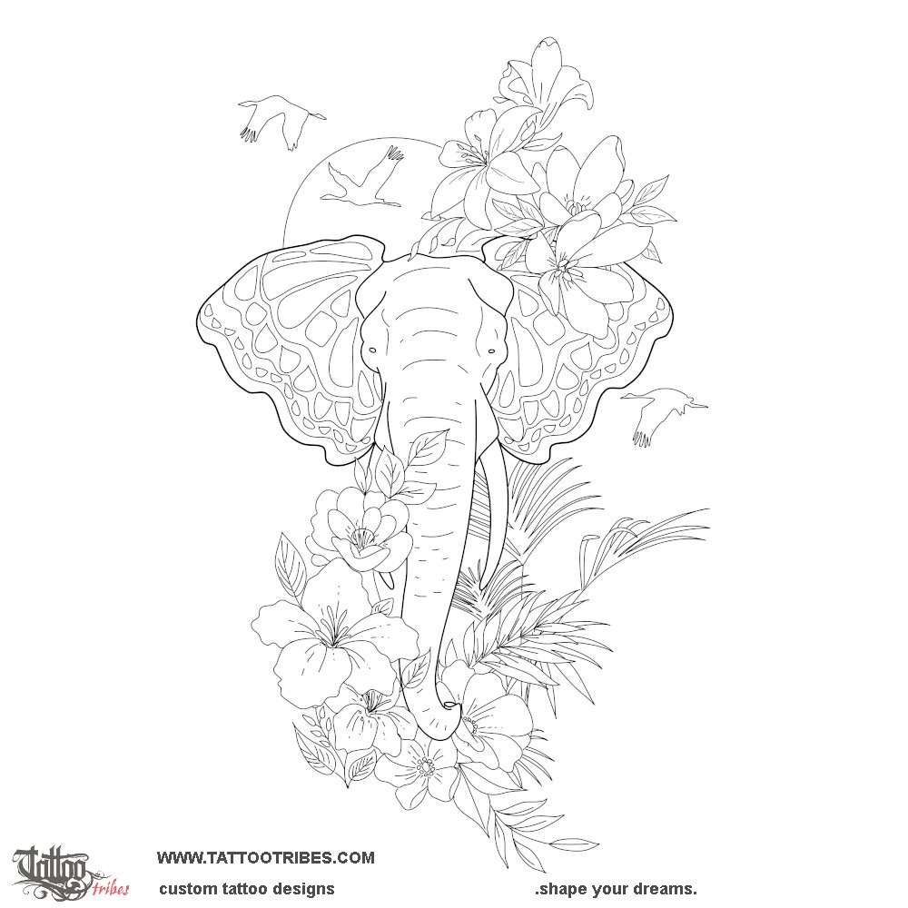 Elephant & butterfly tattoo photo