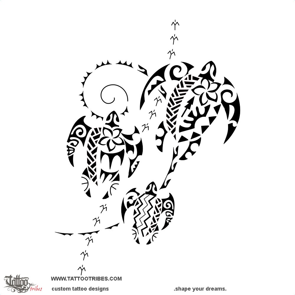 Polynesian family turtles tattoo